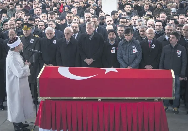 Cenaze namazına ise Cumhurbaşkanı Tayyip Erdoğan, TBMM Başkanı İsmail Kahraman, Başbakan Binali Yıldırım, Genelkurmay Başkanı Orgeneral Hulusi Akar ve kuvvet komutanları, CHP Genel Başkanı Kemal Kılıçdaroğlu, MHP Genel Başkanı Devlet Bahçeli, Başbakan Yardımcıları Bekir Bozdağ, Recep Akdağ, Hakan Çavuşoğlu, Cumhurbaşkanlığı Sözcüsü İbrahim Kalın, bakanlar, askeri erkan ve yargı temsilcileri ile çok sayıda vatandaş katıldı. Bir konuşma yapan Erdoğan, şunları söyledi: