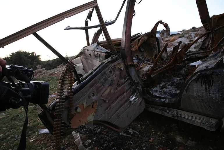 PYD/PKK terör örgütüne ait mühimmat yüklü bir kamyonetle ÖSO kuvvetlerinin bulunduğu mevziye bombalı saldırı girişimi olduğu, TSK tarafından korunan tepeden tespit edildi. Bunun üzerine termal kameralarla takip edilen aracın, yerleşim yerlerinin olduğu alandan çıkması beklendi. Aracın yerleşim yerlerinden uzaklaşmasının ardından teröristlerin bulunduğu araca yönelik tank atışı yapıldı. Tank atışı sonucu araç imha edilirken, AA ekibi hem yapılan atışı hem de sonrasında aracın durumunu görüntüledi.