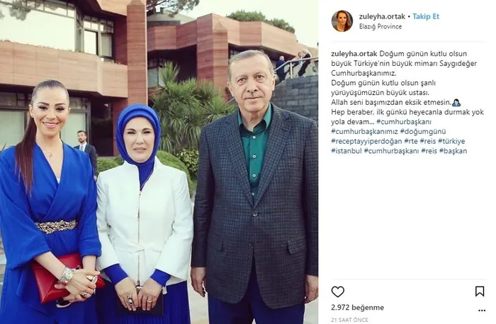Züleyha Ortak: "Doğum günün kutlu olsun büyük Türkiye'nin büyük mimarı, saygıdeğer Cumhurbaşkanımız. Doğum günün kutlu olsun şanlı yürüyüşümüzün büyük ustası. Allah seni başımızdan eksik etmesin."