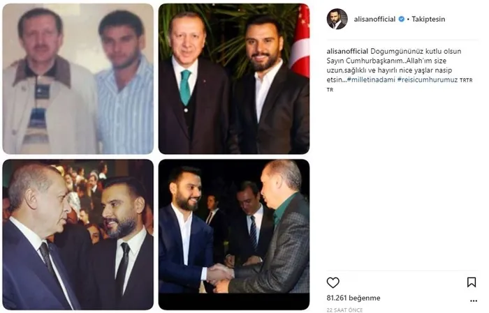Alişan: "Doğum gününüz kutlu olsun Sayın Cumhurbaşkanım. Allah'ım size hayırlı, uzun, sağlıklı, nice yaşlar nasip etsin."