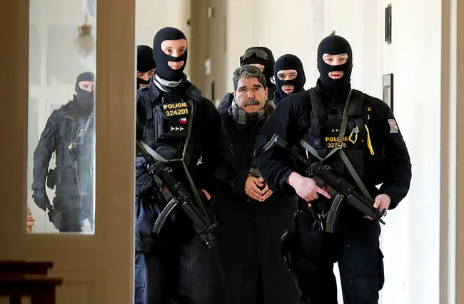 Çekya'nın başkenti Prag'da önceki gün gözaltına alınan terör örgütü PYD/PKK'nın kırmızı bültenle aranan eski eş bakanı Salih Müslim, davanın görüleceği Prag Şehir Mahkemesine ele kelepçeli getirildi..