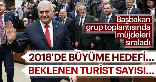 Türkiye'nin 2018'deki büyüme oranını açıklayan Binali Yıldırım, "Türkiye'nin 2018'de büyüme oranı 7 ila 7.5 arasında rekor bir şekilde gerçekleşeceğini" söyledi. Başbakan ekonomik yatırımlar hakkında şunları söyledi: Yatırım ortamının iyileştirilmesiyle ilgili tüm detayları yarın Külliye'deki toplantıda milletimizle paylaşacağız.