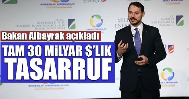 Enerji ve Tabii Kaynaklar Bakanı Berat Albayrak, 2033'e kadar Ulusal Enerji Verimliliği Eylem Planı ile 30.2 milyar dolarlık tasarruf sağlanacağını açıkladı. SABAH'ın sponsor olduğu 9. Enerji Verimliliği Forumu ve Fuarı'nın açılışında konuşan Bakan Albayrak, eylem planını bizzat takip edeceğini belirterek, "Güçlü Türkiye İçin Bilinçli Tüketim Verimli Enerji" dedi. 6 kategoride yapılacak 55 eylemle, 2033'e kadar kümülatif olarak 23.9 MTEP tasarruf sağlanması ve tasarruf için 10.9 milyar dolarlık yatırım yapılması öngörülüyor.