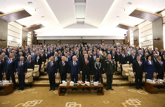 Suriye'de yerlerinden edilmiş 3.5 milyon insanın 7 yıldır topraklarında güven ve refah içinde yaşatan Türkiye'nin bu mücadelesinde yalnız kalıyorsa hep birlikte düşünülmesi gerektiğinin altını çizen Erdoğan, "Türkiye'nin milyonlarca sığınmacıya sunduğu hizmetlere destek vermeyenler terör örgütlerine milyarlarca doları cömertçe akıtıyorsa bu durum ağaçların değil, dikenlerin sulandığı anlamına gelir. Bu düzenin adı adalet değil, zulüm düzenidir. Mazlumların kanları ve gözyaşları üzerinde kurulan bu düzene itiraz etmek en başta adaletin temsilcisi olan sizlerin görevi olmalıdır. Küresel güç oyunlarının karmaşasında rotasını şaşıranlar için sizler kutup yıldızı gibi doğruya giden yolun kılavuzu olmalısınız. Biz her şeye rağmen umutluyuz. Çünkü bizim inancımızda umutsuzluğa asla yer yoktur" ifadelerini kullandı.