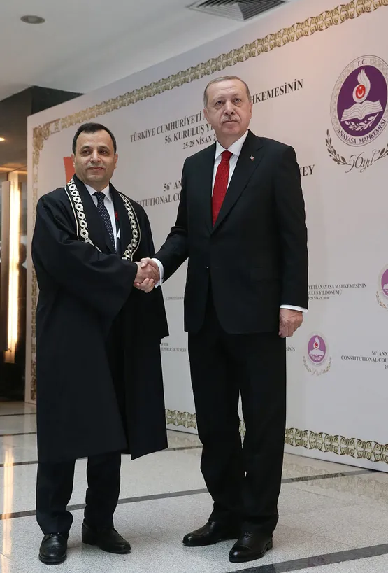 Anayasa Mahkemesi 56. Kuruluş Yıl Dönümü Töreni'ne katılan misafirlerle Cumhurbaşkanlığı Külliyesinde akşam yemeğinde bir araya gelen Cumhurbaşkanı Erdoğan, konuşmasında, "Bugün bizlere düşen görev, dünyanın, ülkelerimizin ve toplumlarımızın eski karanlık günlerine dönmesini beklemeden insanlığın adalet talebine kulak vermektir" ifadelerine yer verdi.