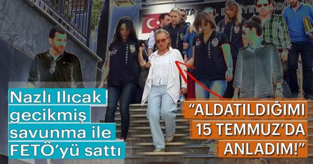 Tutuklu sanık Nazlı Ilıcak, "15 Temmuz sonrası ben bu asker içerisindeki yapılanmayı fark ettikten sonra, maalesef gerçeği 15 Temmuz öncesinde görmediğimi kabul ettim ama bunların amacını bilerek, isteyerek, kasıtla destek vermemin imkanı yok. Ben cemaatin kriminal yüzünü 15 Temmuz sonrası gördüm. Çünkü bunlar sinsi bir örgüt. Güler yüz, tatlı kelam, güzel okullar, fakir fukaraya yardım, bu dini faaliyetleri beni cezbetti. Benim Tercüman gazetesinden gelen muhafazakar geçmişim olduğu için. Yani bu başörtüsü davalarında her zaman en büyük mücadeleyi verdiğim için zannettim ki aynı zihniyet. Aldandığımı bugün itiraf ediyorum." diye konuştu.
