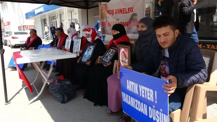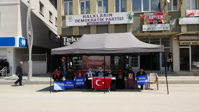 HDP Muş İl Başkanlığı önünde 54'üncü haftada eylemlerini sürdüren ailelerin sayısı 34'e çıktı. Parti binası önüne gelen aileler, "Yavrumu verin bana", "Anneler direniyor", "Artık yeter, bırakın evlatlarımızı" ve "Artık yeter, yakamızdan düşün" yazılı dövizler açarak, evlatlarına teslim olmaları çağrısında bulundu. Nöbete devam eden 32 aileye bir destekte Dost ve Kaya ailelerinden geldi.