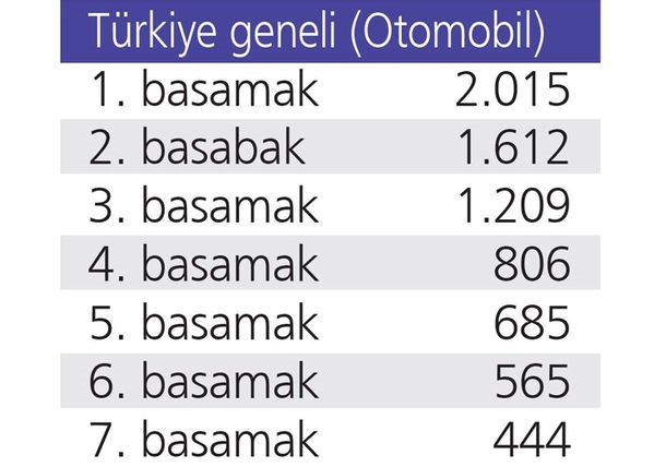 Gazete Habertürk'ten Rahim Ak'ın haberine göre, trafik sigortasında araçların sigorta primi 7 ayrı basamakta belirleniyor. İlk kez otomobil veya başka bir araç alıp sigorta yaptıran sürücü 4'üncü basamak sayılıyor. Sürücü eğer kaza yaparsa 1'inci basamağa doğru eğer kaza yapmaz ise 7'nci basamağa doğru gidiyor. 7'nci basamak 3 yıl arka arkaya kaza yapmayan iyi sürücüleri içeriyor.