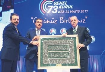 Montajcılığın Türkiye'ye yakışmadığını söyleyen Erdoğan, şöyle konuştu: "Bir parçası şurdan, bir parçası bundan, bir parçası oradan gelsin. Onları monte et, sonra piyasada dolaştır. Bu millet, bunu üretebilecek beyne de ürüne de sahip. Bunu yapabilir miyiz? Yaparız. Niye yapmıyoruz? Çünkü öbüründen daha fazla kazanıyor." Erdoğan, daha sonra TOBB Başkanı'ndan söz aldı. Cumhurbaşkanı'nın kürsüden yaptığı çağrıya ayağa kalkarak olumlu yanıt veren TOBB Başkanı Rifat Hisarcıklıoğlu, "Siz bunu istedikten sonra iş dünyası bunu rahatlıkla yapar. Biz hazırız. Siz yeter ki bizim yanımızda olun" diye konuştu. Hisarcıklıoğlu'nun sözleri üzerine Cumhurbaşkanı Erdoğan da "Şu anda ekranları başında bizi tüm Türkiye izliyor. Biz her an böyle bir konuda yanınızdayız" karşılığını verdi. Bürokratik oligarşiyi yıkmak için iş dünyasının da bakanları sıkıştırmasını isteyen Erdoğan, iş dünyasına "Sizler bu iletişimi bizlerle kararlı bir şekilde sürdürürseniz oligarşik yapıyı ciddi manada çökertiriz" dedi.
