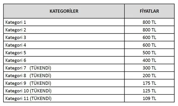 Satışa sunulacak biletlerin fiyatları 400 ile 800 lira arasında değişiyor.