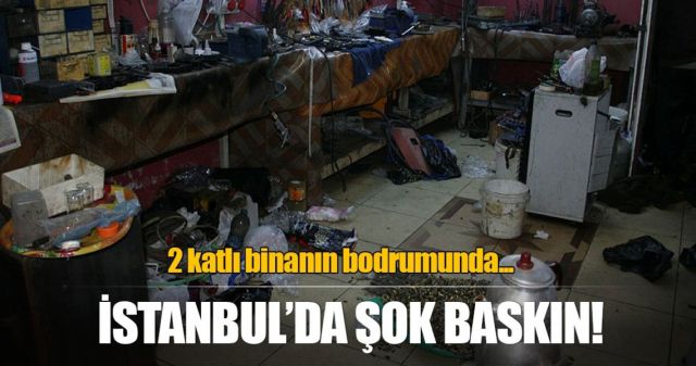 Pendik'te silah imalathanesine gece baskın düzenlendi. İmalathaneye yapılan baskında bazı kişiler gözaltına alınırken çok sayıda silah ve mermi ele geçirildi. İstanbul Emniyet Müdürlüğü Gasp Büro Amirliği ekipleri, bir ihbar üzerine Pendik, Fatih Mahallesi Efendiler Sokak üzerinde bulunan 2 katlı bir binanın bodrum katına baskın düzenledi. Baskında, silah imalatı yaptığı belirlenen kişiler gözaltına alınırken çok sayıda silah ve mermi ve silah yapımında kullanılan malzemeler ele geçirildi. KAMERALARLA ÖNLEM ALMIŞLAR Silah imalatında kullanılan makineler ve çeşitli malzemelere de el konulurken bina girişine kameraların olması dikkat çekti.