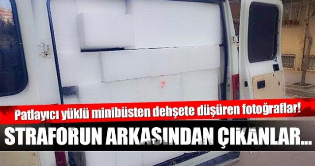 İstanbul'da saldırı hazırlığındayken Bahçelievler'de ele geçirilen patlayıcı yüklü minibüsle ilgili fotoğraflar ortaya çıktı. Bahçelievler'de polisin operasyonuyla etkisiz hale getirilen patlayıcı yüklü araçla ilgili yeni fotoğraflar ortaya çıktı. İçi patlayıcı dolu ele geçirilen farklı boyutlardaki yangın tüpleri ve plastik kovaların yer aldığı fotoğraflarda, minibüsün straforla kapandığı kareler yer alıyor. Bombalı minibüsün hedefinde polisleri taşıyan çevik kuvvet otobüsü olduğu öğrenilmişti.
