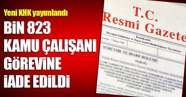Olağanüstü hal (OHAL) kapsamında yayımlanan 697 sayılı Kanun Hükmünde Kararname (KHK) ile görevlerinden ihraç edilen bin 823 kamu çalışanı görevlerine iade edildi.