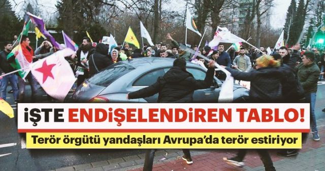 Almanya'nın Salzgitter-Lebenstedt şehrinde 2 Şubat'ta gösteri yapan terör örgütü PYD/PKK yandaşları da bir Türk vatandaşının aracına sopalarla saldırdı. Küçük çocukların da bulunduğu araçta ciddi hasar meydana geldi.