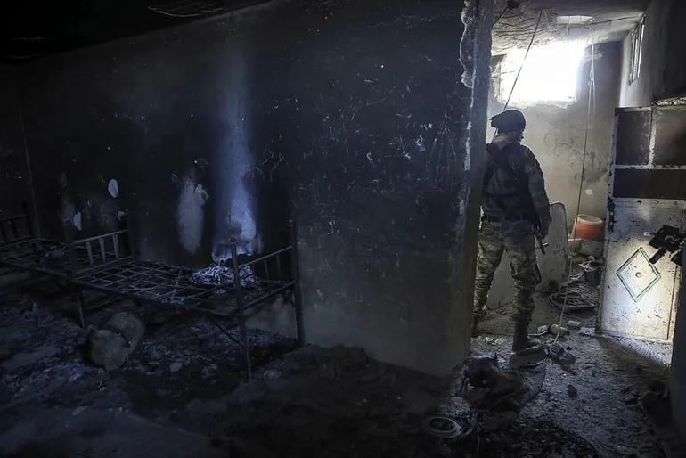 Türk Silahlı Kuvvetleri (TSK) ve Özgür Suriye Ordusu (ÖSO) unsurlarının Afrin'de terör örgütü PYD/PKK'dan temizlediği Sirgaya Tepesi'nin birbirleriyle bağlantılı beton tünellerle çevrili olduğu görüldü.