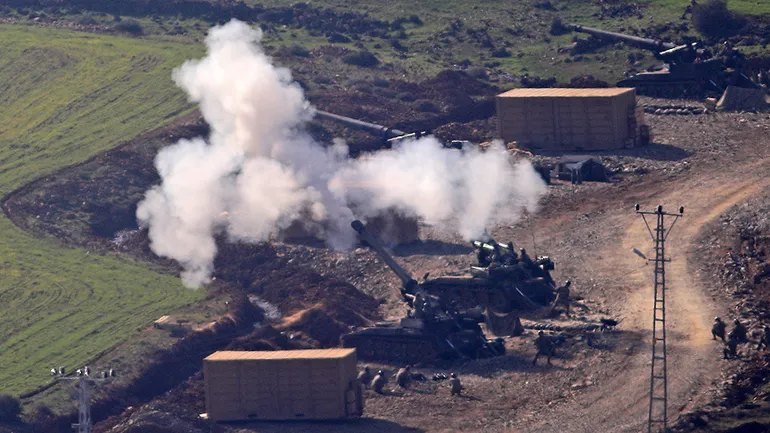 Kilis-Hatay hattının Suriye kesimindeki Darmık Dağı bölgesinde tespit edilen terör örgütü PYD/PKK'ya ait hedeflere, Fırtına obüsleri ve tanklarla atış yapıldı. Bombalanan bölgedeki terör hedefleri tam isabetle vuruldu.