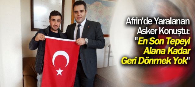 MANİSA (İHA) – Suriye'nin Afrin kentinde yürütülen operasyonda terör örgütü PYD/PKK'lı teröristlerin roketli saldırısı sonucu yaralanan Piyade Uzman Çavuş Orhan Kayalı, "Hiçbir zaman geri dönmeyi, vazgeçmeyi düşünmedik. Tek emelimiz var, en son tepeyi alana kadar geri dönmek yok" dedi.
