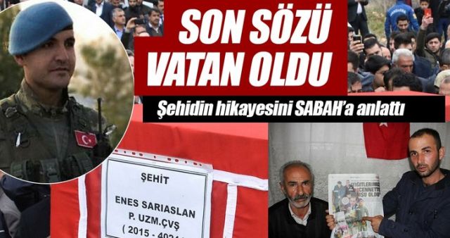 Bir şeyler söylemeye çalıştı ama tek anladığım sözü 'Vatan' oldu. Üzerindeki kimliği çıkarttığımızda onun Adıyaman'ın Besni ilçesine bağlı Sulvarlı mahallesinden hemşerim Enes Sarıaslan olduğunu öğrendim. Tek isteğim, en kısa zamanda iyileşip silah arkadaşlarımın yanına dönmek. Dönmeden önce de Enes kardeşimin Sulvarlı'daki mezarını ziyaret edip silah arkadaşlarının selamını ileteceğim.