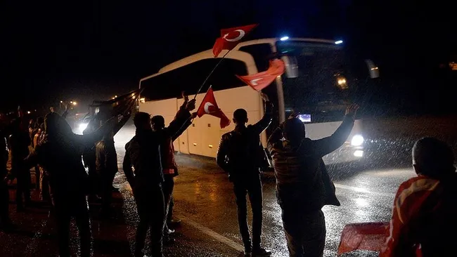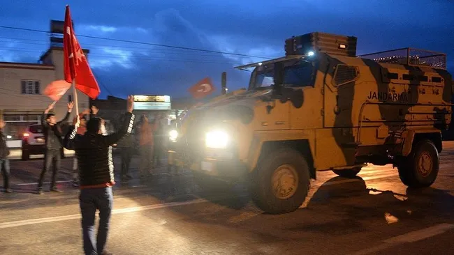 Bu esnada ellerinde Türk bayraklarıyla yola çıkan çok sayıda vatandaş, zırhlı araçların birinden çalınan marşlar eşliğinde güvenlik güçlerini uğurlamak üzere merkez önünde bir araya geldi. Vatandaşlar, askerlere sevgi gösterisinde bulundu.