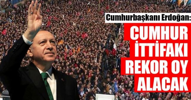 AK Parti'nin başkalarıyla değil, daima kendi elde ettiği sonuçlarla yarıştığına dikkat çeken Cumhurbaşkanı Erdoğan, Cumhur İttifakı ile ilgili şunları söyledi: "2019'da AK Parti'yi ve MHP ile yapmış olduğumuz Cumhur İttifakı'nı gelmiş geçmiş en yüksek oy oranları ile tanıştıracağız. Onun için MHP'li kardeşlerimizle el ele vererek, omuz omuza vererek dayanışma içinde inşallah 2019 seçimlerinde sandıkları patlatacak, ümmetin, milletin birliğini, beraberliğini zirveye taşıtacağız. Birileri bizim 2019 seçimlerinin startını şimdiden vermiş olmamızı, kuruntularına, vesveselerine, aslı astarı olmayan spekülasyonlarına alet ediyor. Oysa biz parti olarak her an seçim olacakmış gibi çalışan bir siyasi hareketiz. Bu alışılmış bir parti değil, bu bir dava."