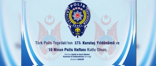 Manisa Şehit ve Gazi Aileleri Koruma ve Kalkındırma Derneği Yönetim Kurulu Başkanı İbrahim SAGUN, 10 Nisan Polis Haftası nedeniyle bir mesaj yayınladı.