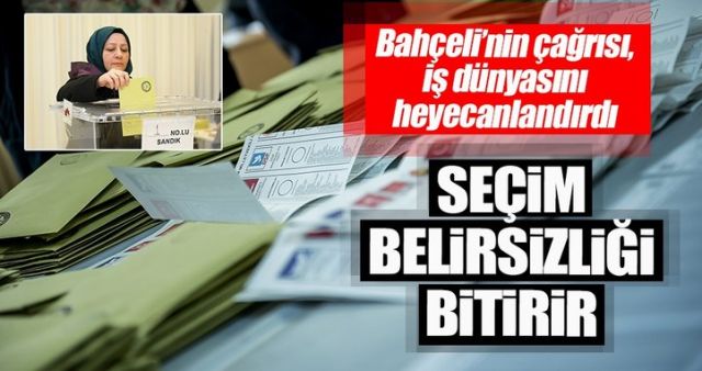 MHP lideri Devlet Bahçeli’nin seçimin erkene alınması çağrısı iş dünyasını heyecanlandırdı. Türkiye’nin kaybedecek zamanının olmadığı ve erken seçimin belirsizliği azaltacağı belirtildi