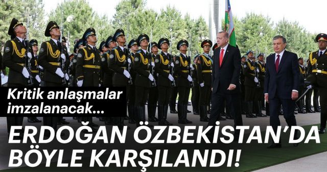 Cumhurbaşkanı Erdoğan Özbekistan'da resmi törenle karşılandı. Erdoğan Özbekistan Cumhurbaşkanı Şavkat Mirziyoyev'le ikili görüşme gerçekleştirecek. Cumhurbaşkanları görüşmesi sonrası Heyetler arası görüşmeler, Anlaşmaların İmzası ve Ortak Basın Toplantısı gerçekleştirilecek.
