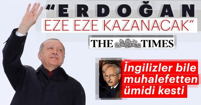 İngilizler bile Türkiye'deki muhalefetten ümidini kesti. Türkiye'deki seçimleri ve CumhurbaşkanıErdoğan'ın mitinglerini başyazı konusu yapan İngiliz The Times, Cumhurbaşkanı Erdoğan'ın 15 yıldır iktidarda olduğunu ve şüphesiz 24 Haziran seçimlerini ezici bir çoğunlukla kazanacağını yazdı.