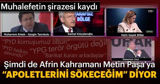 CHP, Türkiye karşıtı ittifakların avukatlığı ve sözcülüğünü yapmaya devam ediyor. Son olarak CHP'nin cumhurbaşkanı adayı Muharrem İnce; Afrin'de PKK'yı kazdıkları çukurlara gömen Mehmetçik'e önderlik eden İ.Metin Temel Paşa için "onun apoletlerini sökeceğim" demişti.