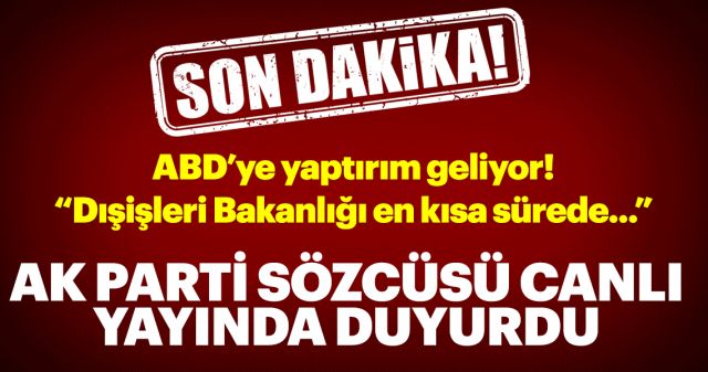 Katıldığı tv programında ABD'nin skandal kararını sert sözlerle eleştiren AK Parti Sözcüsü Mahir Ünal, "Bu Türkiye Cumhuriyeti devletine karşı saldırgan tutum. ABD ile yaşanan sürece bakınca ABD yönetiminin bir süreden beri sadece Türkiye'ye değil birçok ülkeye dönük yaptırımlar uyguladığını, tehditkar bir dil kullandığını görüyoruz. Türkiye mütekabiliyet esasına göre gereken cevabı verecek."