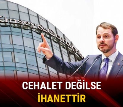 Hazine ve Maliye Bakanı Berat Albayrak, ABD’li McKinsey’den danışmanlık hizmeti alınmasının ardından ‘Ekonomi ABD’ye teslim’, ‘McKinsey 2. kozmik oda vakası’ gibi benzetmeler yaparak yaygara koparanlara sert yanıt verdi. Albayrak, Kamu Maliyesi Değişim ve Dönüşüm Ofisi’nin kuruluşu sırasında ABD’li danışmanlık şirket McKinsey’den hizmet alındığını belirten Albayrak söz konusu şirketin denetim faaliyeti yürütmeyeceğini belirterek “Ortadaki spekülatif söylemler cehaletten değilse ihanettendir” dedi. Sadece McKinsey’den değil birçok firmadan görüş alındığını belirten Albayrak “Herkesin aklını alıp biz yöneteceğiz” dedi.