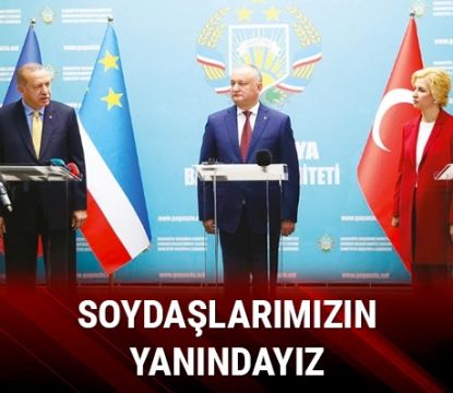 Başkan Erdoğan, Gagauzya’da halka hitap etti. Erdoğan şunları söyledi: “Bizlere şu muhteşem tabloyu yaşattığınız için her birinize şükranlarımı sunuyorum. Bugün burada kardeşlik var. Sizlere tüm Türkiye’nin 81 milyonluk Türk milletinin selamlarını getirdim. Karşımdaki şu muhteşem dayanışma manzarasına ulaşmamız hiç kolay olmadı. Gökoğuz Yeri’nin 1994 yılında Özerk statüye kavuşmasına katkı sağlayan 9. Cumhurbaşkanımız merhum Süleyman Demirel’i dönemin Moldova Cumhurbaşkanı Mircea Snegur’u yine o dönemde Gökoğuz Türklerinin önderi Stefan Topal’ı buradan şükranla yaad ediyorum. TİKA’mızla, iş adamlarımızla ve sivil toplum kuruluşlarımızla Moldova’nın kalkınması gelişmesi dünya sahnesinde hak ettiği konuma ulaşması için gayret sarf ediyoruz. Bundan sonra da siz Gökoğuz Türklerinin kara gün dostu olmayı sürdüreceğiz. Kültürel ırkçılık dünyanın dört bir ucunda adeta bir veba salgını gibi gün geçtikçe yayılıyor. Buradaki soydaşlarımızın asla böyle bir tuzağa düşmemesi gerekiyor. Bu topraklardaki barış ve huzur ortamının bozulmasına hiç birinizin müsaade etmeyeceğini düşünüyorum.”