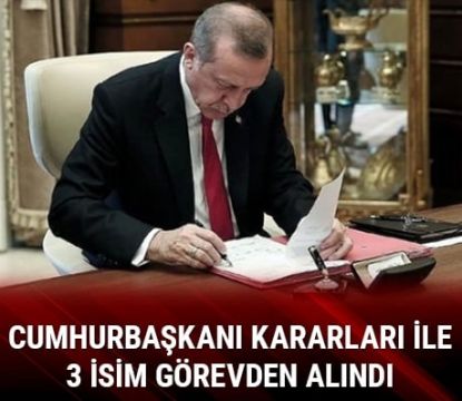 ürkiye Cumhurbaşkanı Recep Tayyip Erdoğan imzasıyla Resmi Gazete'de yayımlanan Cumhurbaşkanı kararlarına göre, Çorum İl Müftüsü Ahmet Akın, Muğla İl Müftüsü Abdurrahman Koçak ve Kilis İl Müftüsü Mahmut Karatepe görevlerinden alındı.