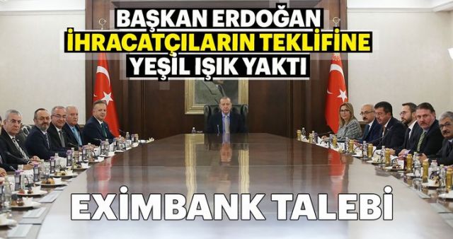 Başkan Recep Tayyip Erdoğan, Türkiye İhracatçılar Meclisi (TİM) Başkanı İsmail Gülle ve beraberindeki heyeti, Çankaya Köşkü'nde kabul etti. Bir saate yakın süren toplantıda özellikle Eximbank'ın ihracatçıya verdiği kredi miktarının artırılması ve bunun kaldıraç etkisi yaratacağı üzerinde duruldu.