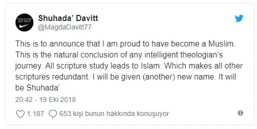 Davitt, ayrıca ezanı kendi üslubunda seslendirdiği bir video da paylaştı.