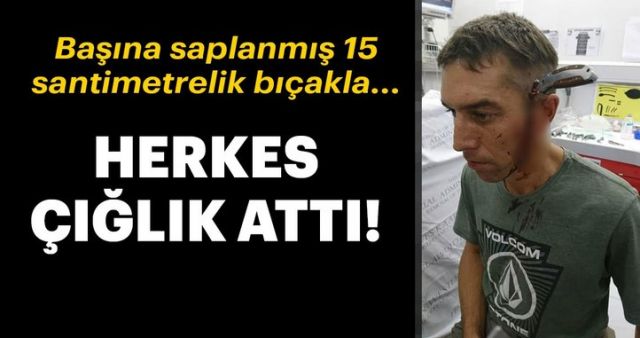 Ancak 34 yaşındaki Shaun Wayne'i görenler küçük dilini yuttu. Wayne'in kafatasına saplanmış 15 santimetrelik bir bıçak vardı.