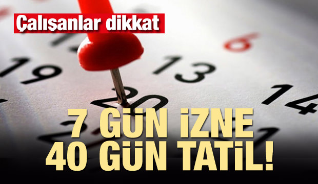 Yapılan araştırmaya göre; resmi tatillere eklenecek 7 buçuk izingünüyle, 2019 yılında 40 gün civarında tatil yapılabiliyor.