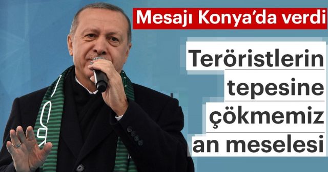 HASAN AY Başkan Recep Tayyip Erdoğan, Şeb-i Arûs programına katılmak için gittiği Konya'daki Mevlana Meydanı'nda Toplu Açılış Töreni'nde halka hitap etti. Coşkulu kalabalığın Türk bayraklarıyla ve yoğun tezahüratla karşıladığı Erdoğan Konyaspor atkısı taktıktan sonra başladığı konuşmasında Fırat'ın doğusuna yapılacak TSK operasyonu için en net mesajını verdi. İşte Erdoğan'ın konuşmasının satırbaşları: - Türkiye'nin bugün böylesine kendinden emin şekilde hakkını, hukukunu savunabilmesinin gerisinde ülkemizi 16 yılda 3.5 kat büyütmüş olmamızın verdiği güven duygusu var. Biz sınırlarımız boyunca kurulmaya çalışılan terör koridoruna izin vermeyeceğimizi bugün Konya'dan bir daha söylüyorum. Sadece söylemekle kalmıyorum 3 ayrı operasyonla bunu zaten icra ettik. Diğer bölgelerde büyük ölçüde bu oyunu bozduk. Şimdi sıra Fırat'ın doğusuna geldi. Bölgedeki teröristleri alenen himaye edenlere sesleniyorum, yanlış yapıyorsunuz, bundan vazgeçin.