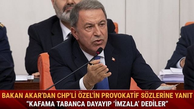 CHP'li Özel'in provokatif sözlerine yanıt veren Milli Savunma Bakanı Hulusi Akar, önceden hazırlandığı belli olan Özel'in bu konuşmasını, başlangıcı, sonu ve ortasında kınadığını ifade etti.