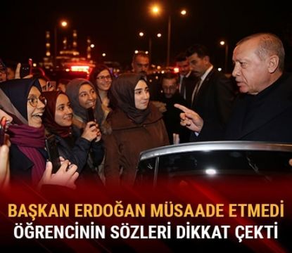 Daha sonra Erdoğan'ın etrafını saran öğrencilerden bazıları cep telefonlarıyla öz çekim yaptı. Kimileri de sürpriz buluşma karşısında yaşadıkları mutluluğu paylaştı.
