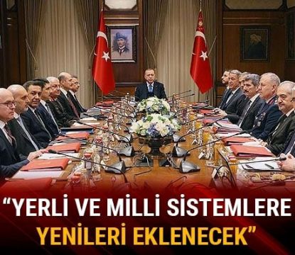 Buna göre toplantıda, sınırlar içinde ve ülke sınırlarının güvencesi için sınır ötesinde harekatlarını başarıyla sürdüren güvenlik birimlerinin gücüne güç katan yerli ve milli sistemlere yenilerini eklemeye yönelik projeler ele alındı.