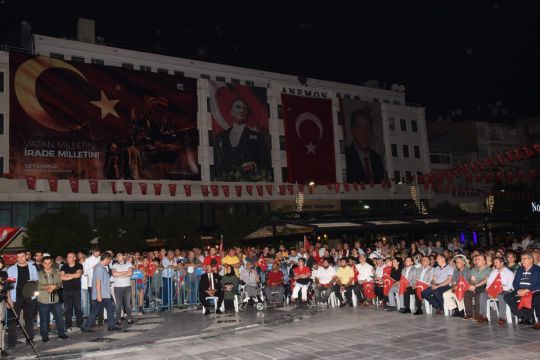 15 Temmuz Demokrasi Meydanından başlayan yürüyüş sonrası Cumhuriyet Meydanını dolduran binlerce Manisalı, Cumhurbaşkanımız Sayın Recep Tayyip Erdoğan’ın İstanbul Atatürk Havalimanında yaptığı konuşmayı canlı yayından meydandan takip etti.