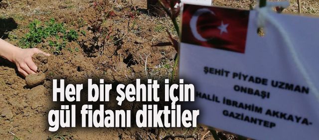 Manisa KYK Muradiye Kız Yurdu öğrencileri İdlib’de rejim güçleri tarafından şehit edilen tüm Mehmeçiklerin adına yurt bahçesine birer gül fidanı dikilerek Fatiha okundu. Manisa Muradiye Kredi Yurtlar Kurumu Kız Yurdu’nda kalan öğrenciler İdlib’te rejim saldırısı sonucu kaybeden Mehmetçikler anısına 40 adet gül fidanı dikti. Dikilen her fidana şehitlerin ismi verilirken, bahçeyi çapalayıp fidan diken öğrenciler şehitleri saygıyla andı. Muradiye Kız Yurdu Müdürü Mehtap Şirin, “Yurdumuzda gençlerimiz ve personelimizle birlikte İdlib’te şehit olan fidan gibi yiğit askerlerimiz anısına, 40 adet gül fidanı diktik. Her fidana bir şehidimizin adını verdik. Bu topraklarda yaşayabilmemiz için şehit olan kardeşlerimize fatiha okuyup fidanlarımıza cansuyu verdik.” dedi. Bahçeye yazılan Türk Silahlı Kuvvetlerinin kısaltması olan TSK harflerinin içine dikilen gül fidanlarının her birine şehit düşen Mehmetçiklerin isminin yazılı olduğu kartlar asıldı.