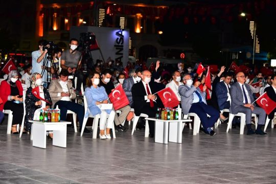 Manisa'da 15 Temmuz hain darbe girişiminin 4. yıl dönümünde 15 Temmuz Demokrasi ve Milli Birlik Günü etkinlikleri kapsamında tutulan demokrasi nöbetinde Manisalılar Cumhuriyet Meydanını doldurdu.