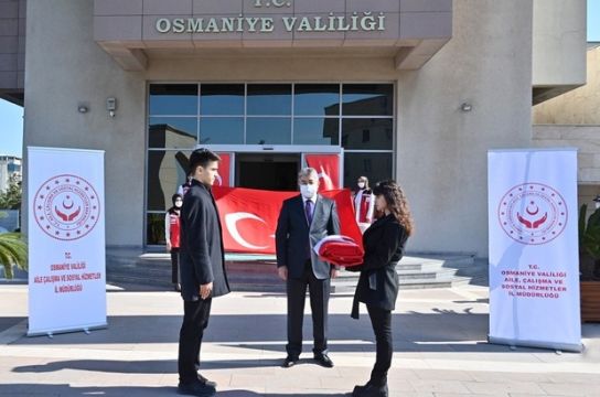 Aile, Çalışma ve Sosyal Hizmetler Bakanlığı Şehit Yakınları ve Gaziler Genel Müdürlüğü bünyesinde organize edilen"18 Mart 2021 Şehitler Günü 81 Genç 81 Bayrak" etkinliği çerçevesinde Osmaniye Valiliğinde bayrak teslim töreni yapıldı.