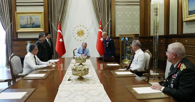 Erdoğan'ın başkanlık edeceği kritik YAŞ toplantısına, Cumhurbaşkanı Yardımcısı Fuat Oktay, Milli Savunma, Adalet, Dışişleri, İçişleri, Hazine ve Maliye, Milli Eğitim Bakanları ile Genelkurmay Başkanı ve kuvvet komutanları katıldı.