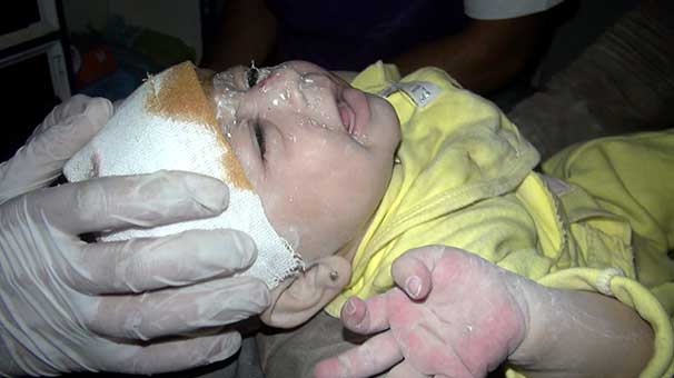 Ekipler bu sırada yıkıntıların içindeki 1 aylık bebeği fark etti. Titiz bir çalışma sonucunda enkazdan sağ çıkartılan bebek, ambulansla sahra hastanesine yetiştirildi.