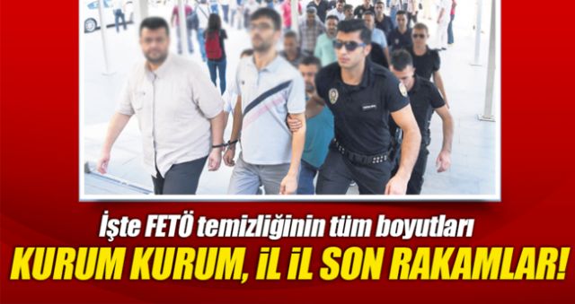 FETÖ'cü darbe girişimi soruşturması kapsamında bugüne kadar 70 bin 50 şüpheli hakkında işlem yapılırken, bunlardan 31 bin 48'i tutuklandı. Tutuklananlar arasında, asker, polis, hâkim, savcı, rektör, belediye başkanı ile vali ve kaymakamlar da bulunuyor. Tutuklamalarda Ankara'nın ise ilk sırada geldiği belirlendi.