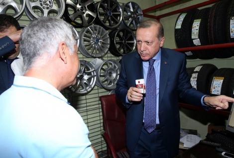 Cumhurbaşkanı Erdoğan, Ankara'da bir lastik dükkanında vatandaşlarla sohbet etti, fotoğraf çektirdi. Erdoğan'a Başbakan Binali Yıldırım da eşlik etti.