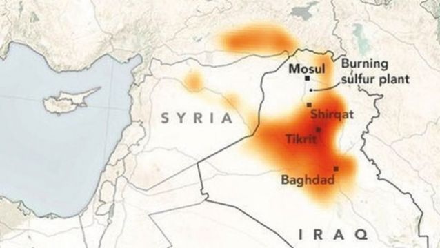 Amerikan Uzay ve Havacılık Dairesi NASA, terör örgütü IŞİD'in geçen hafta ateşe verdiği Musul'un güneyindeki Mişrak Kükürt tesisinden yayılan zehirli gazların Türkiye'ye geldiğini gösteren harita yayınladı. IŞİD'in Musul operasyonuna katılan koalisyon güçlerinin hava saldırılarını engellemek için, Kayyara'ya 25 kilometre uzaklıktaki tesisi yakmasının ardından açığa çıkan zehirli gaz bulutu nedeniyle en az iki kişi hayatını kaybetmişti.